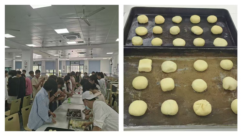 在食堂面点师傅的指导下,同学们分组体验了月饼制作的全过程。从包馅到压模、烘烤,大家认真聆听、相互协作,在劳动中体会传统美食制作的匠心精神。当金黄饱满的月饼出炉时,现场洋溢着成就感与欢声笑语。“原来月饼制作这么有趣,更让我明白了珍惜粮食、尊重劳动的意义。”一位参与的同学感慨道。